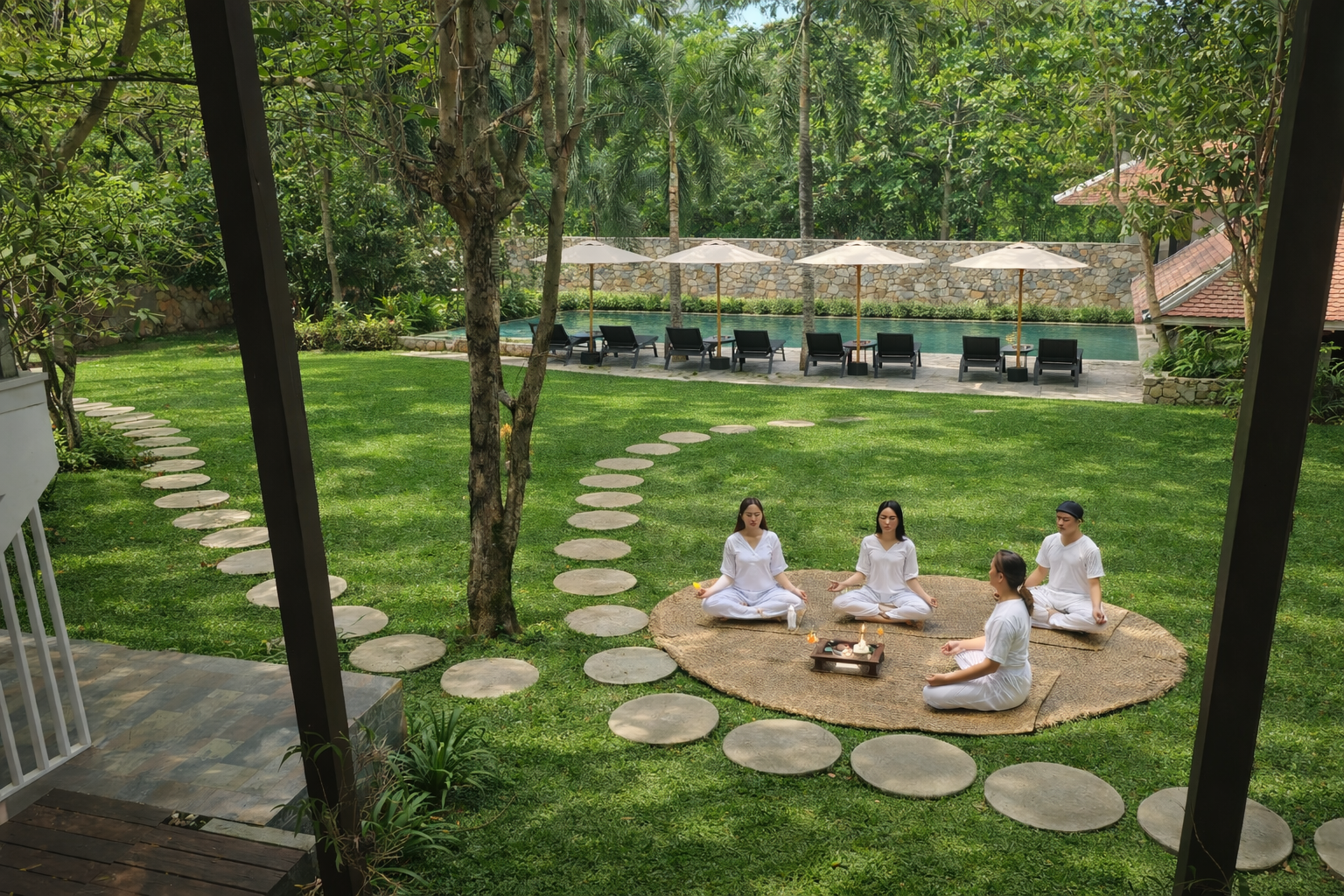 Begin the day with a private yoga or meditation class in the villa’s secluded garden, surrounded by greenery, quiet air, and coastal calm.
